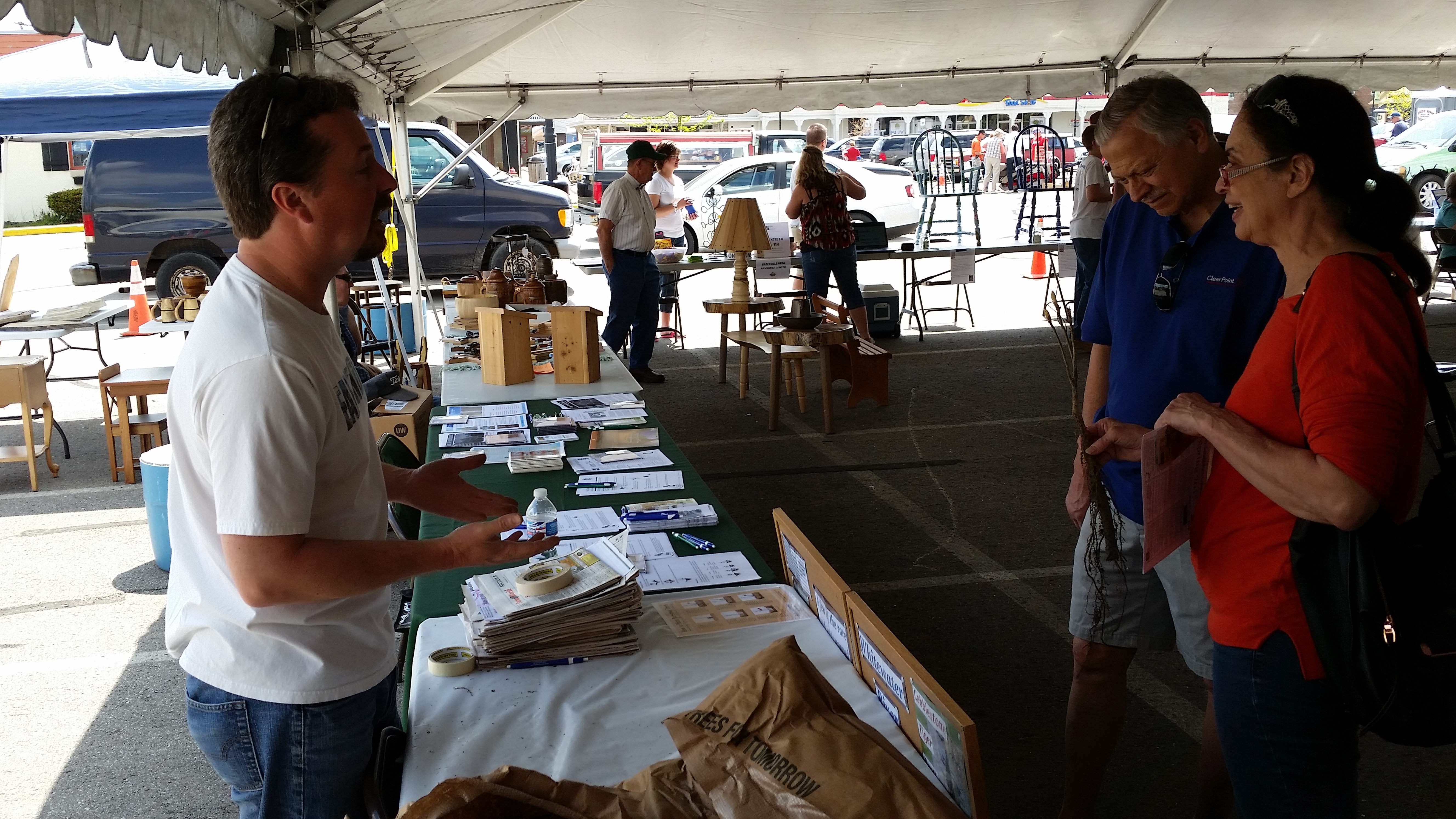 Chris Fox talks trees with folks at Rotary Sawdust Days, 2015