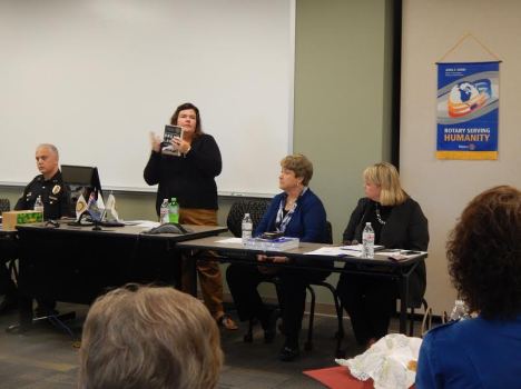 1st Critical Issues Forum. Kim Linkel giving away books.