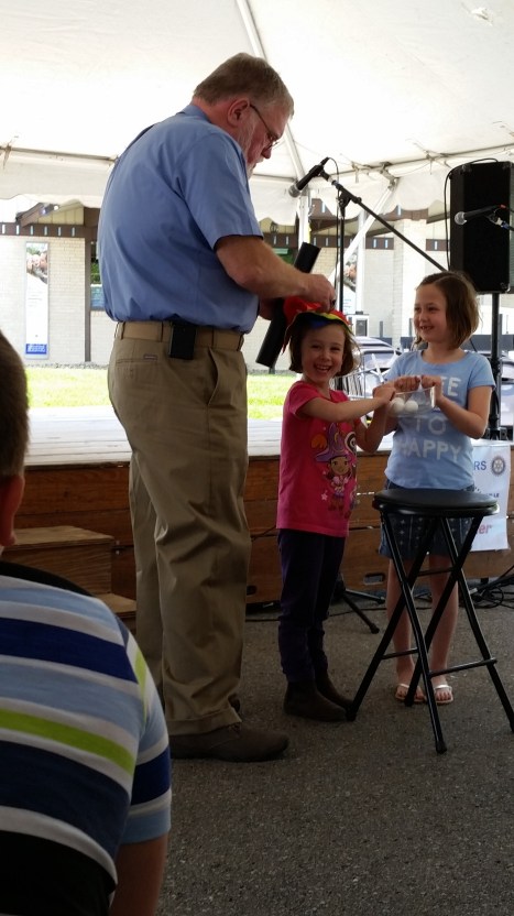 Magic Don Miller & 2 assistants at the 2015 Sawdust Days event.