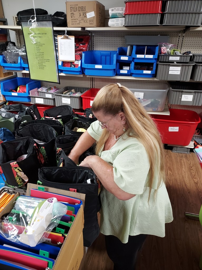 On July 16, volunteers stuffed packs in the Project T3 space within the Batesville Area Resource Center. Rotary Club of Batesville provided some of the volunteers to help fill the backpacks.