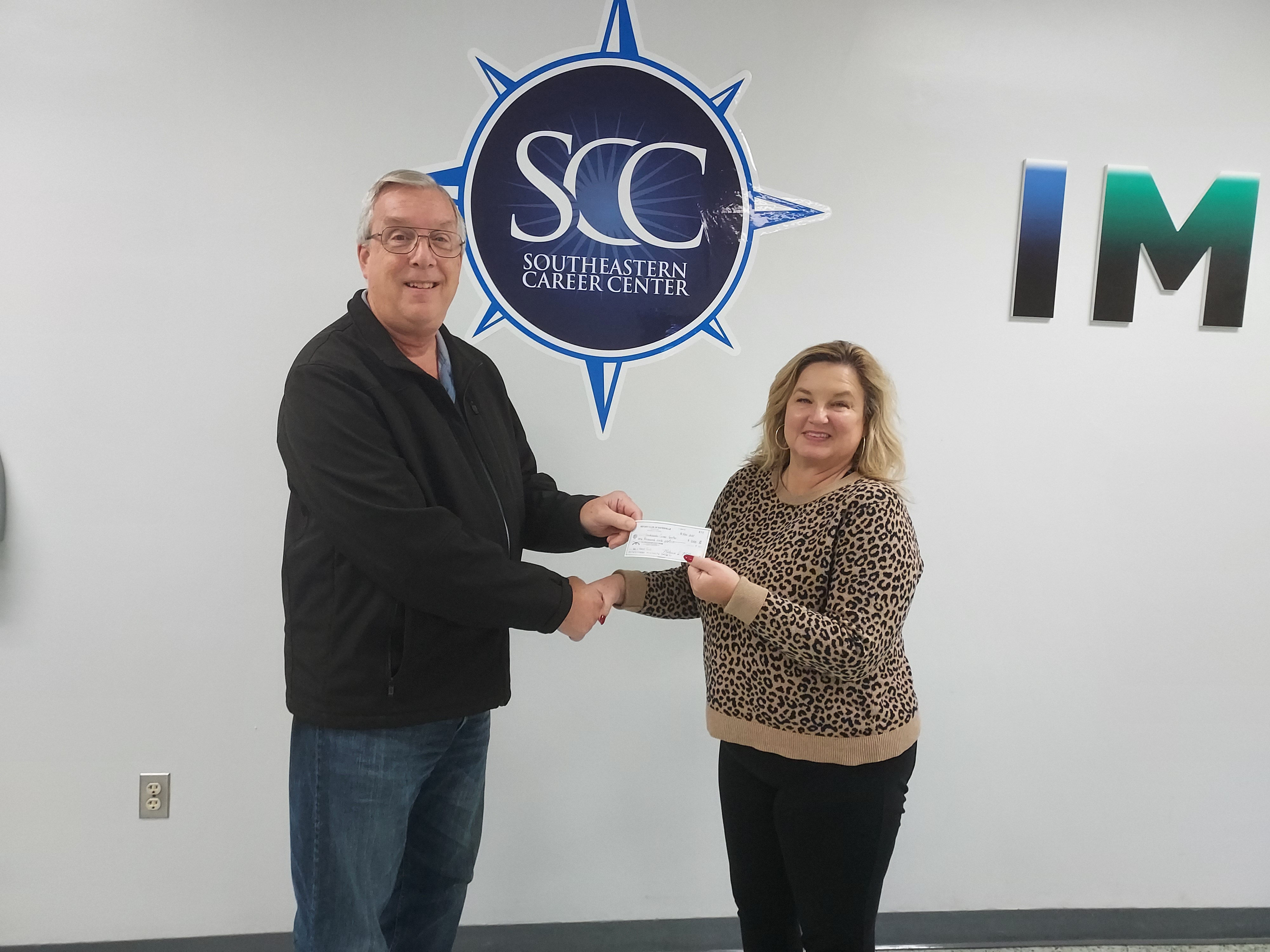 Rotary Club of Batesville President Donald Mobley presented Amy Solly Student Service Coordinator of the Southeastern Career Center a check for $1000 to the “Rotary Help a Student Fund” to help with any costs to enable students to participate in high quality Career & Technical Programs.